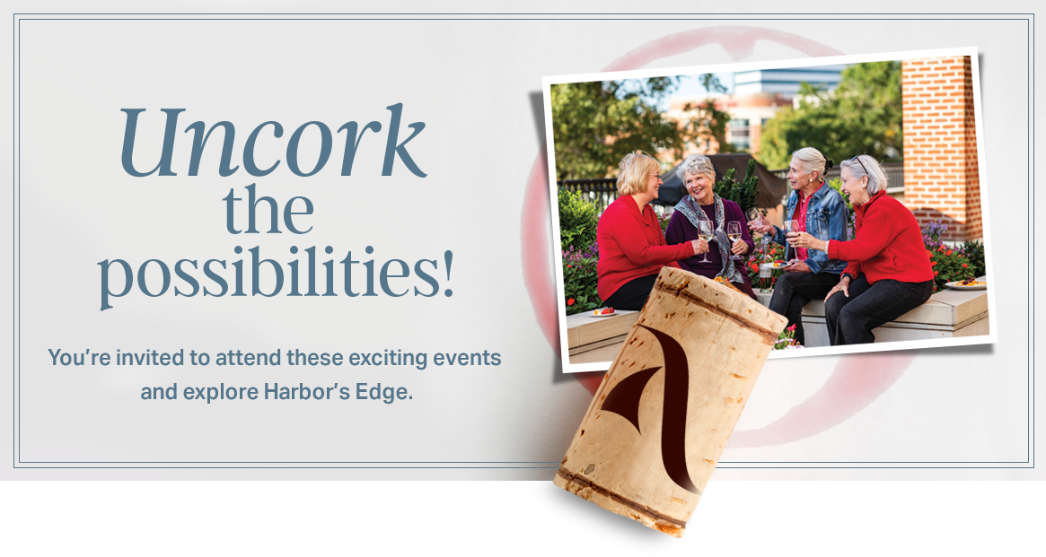 Over a tasting of fine wines and delicious nibbles, enjoy friendly conversation and experience the hospitality and sophistication of Harbor’s Edge. Learn more about our engaging lifestyle, resort-style amenities and the exceptional value a Life Plan community can offer both you and your family.