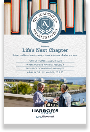 Life at Harbor’s Edge is about living to the fullest, enjoying more of what you love and searching out experiences that will elevate your mind, body and soul. Knowing you have planned for any care or support you may need in the future will give you even more freedom to explore life like you never have before.